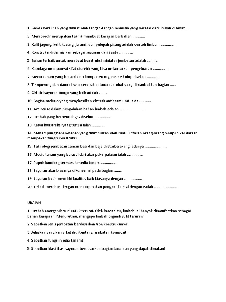 Prakarya Kelas 7 Instructional Technology Quizizz