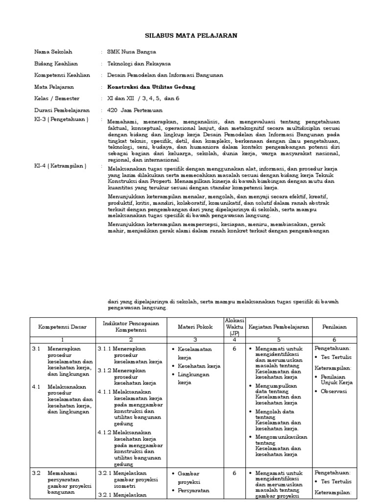 Silabus Konstruksi Dan Utilitas Gedung Pdf