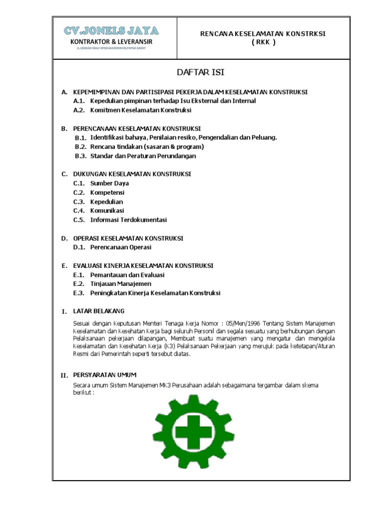 Susunan dokumen RKK terdiri dari. OPERASI KESELAMATAN KONSTRUKSI D1. Langsung Ke Konten Utama.