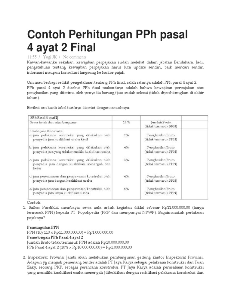 Contoh Perhitungan Pph Pasal 4 Ayat 2 Final Jasa Kontruksi Pdf